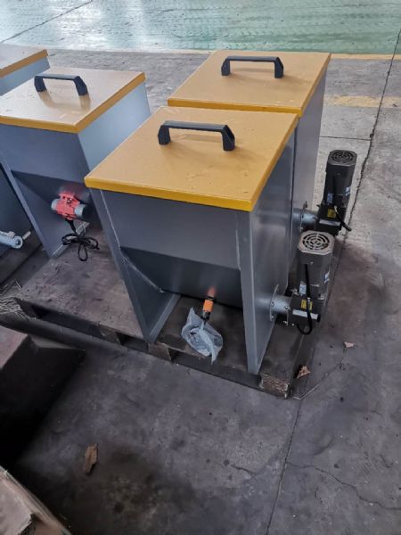 2.干粉配制裝置是一種整體設(shè)備,用于干粉的儲(chǔ)存、喂養(yǎng)、浸泡、溶解和成熟。整個(gè)設(shè)備包括三個(gè)封閉的溶液箱(a)、帶有內(nèi)部沖洗裝置的水管(b)、干粉給料器(c)、攪拌器(d)和控制柜(e)。